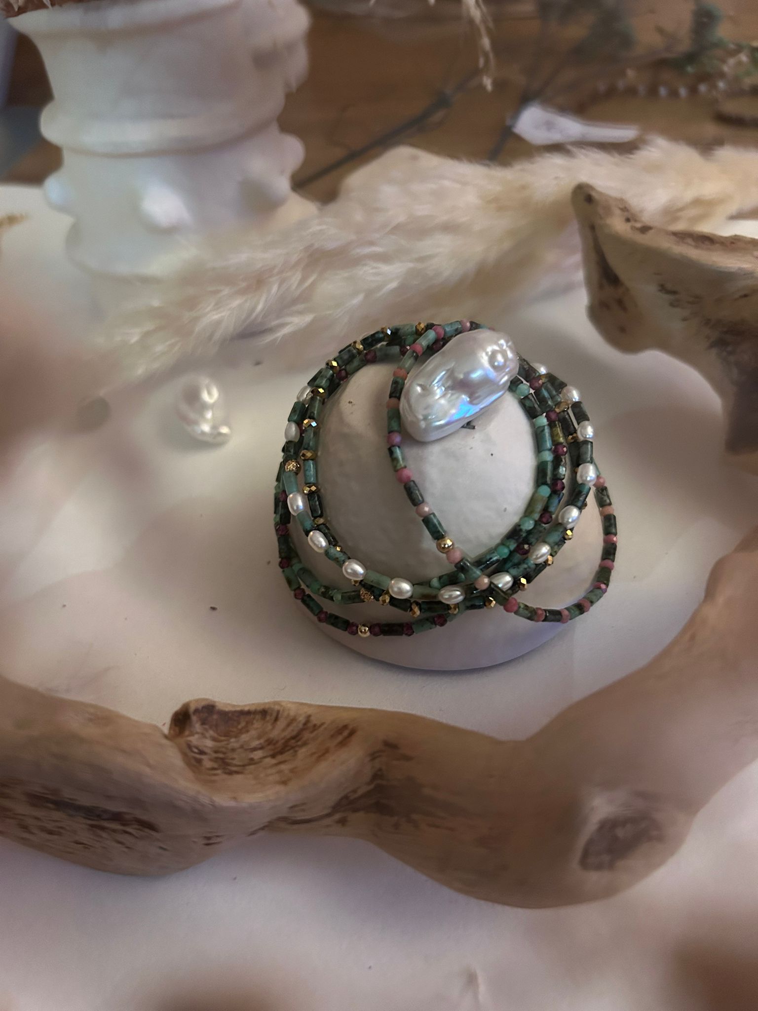 Disponible en plusieurs déclinaisons et couleurs : perle rose, perle vert clair, perle d’eau douce, perle d’hématite dorée… à mixer selon vos envies pour un look personnalisé et lumineux.