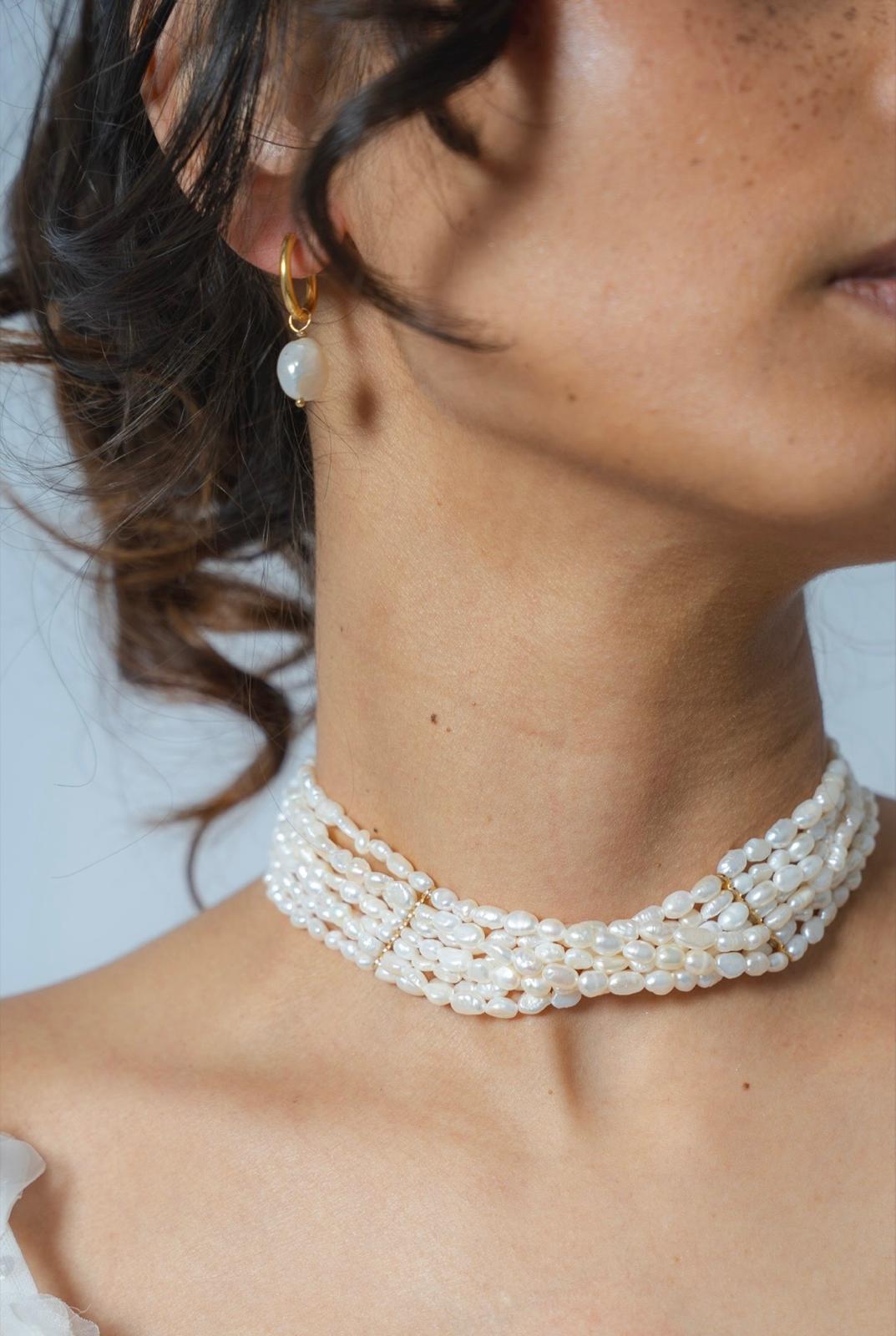 Boucles d’oreilles de mariée en créoles, avec une perle d’eau douce baroque. Élégantes et intemporelles, elles sont faciles porter et restent un choix sûr, parfaites pour le jour J comme pour les jours d après.