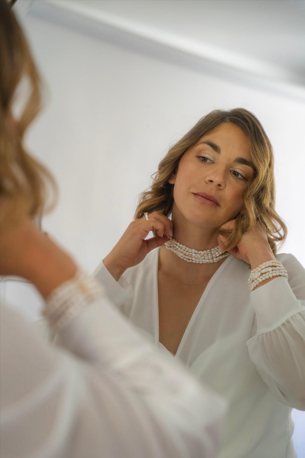 À la fois discret et lumineux, ce bracelet s’intègre harmonieusement à la tenue, laissant toute leur place aux détails précieux qui font la singularité de ce jour unique.