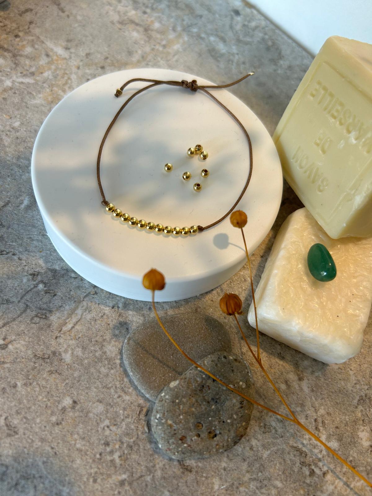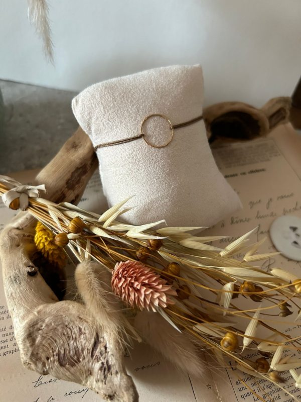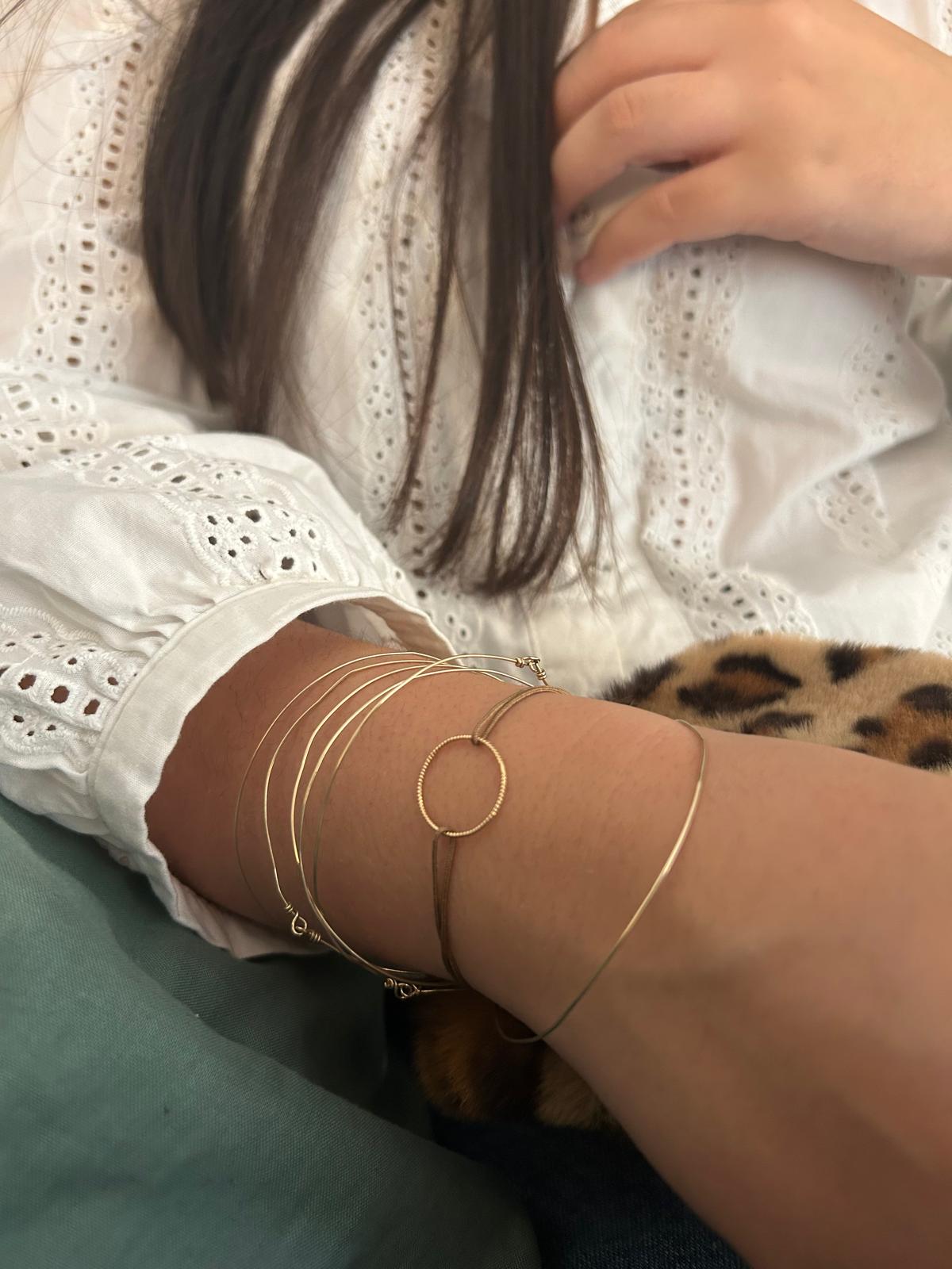 Composé d’un cercle en plaqué or, finement évidé et monté sur un cordon délicat, ce bijou incarne l’élégance dans sa forme la plus pure. Léger et ajustable, il s’adapte parfaitement à votre poignet. Symbole d’harmonie et d’infini, il saura vous séduire.