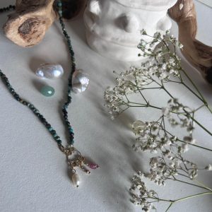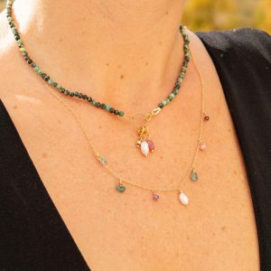 Monté sur un fil délicat, ce collier vous enlace tout en légèreté, tel un souffle d’été. Ajustable, c’est le caméléon de votre boîte à bijoux. Il se faufilera avec élégance dans toutes vos tenues.
