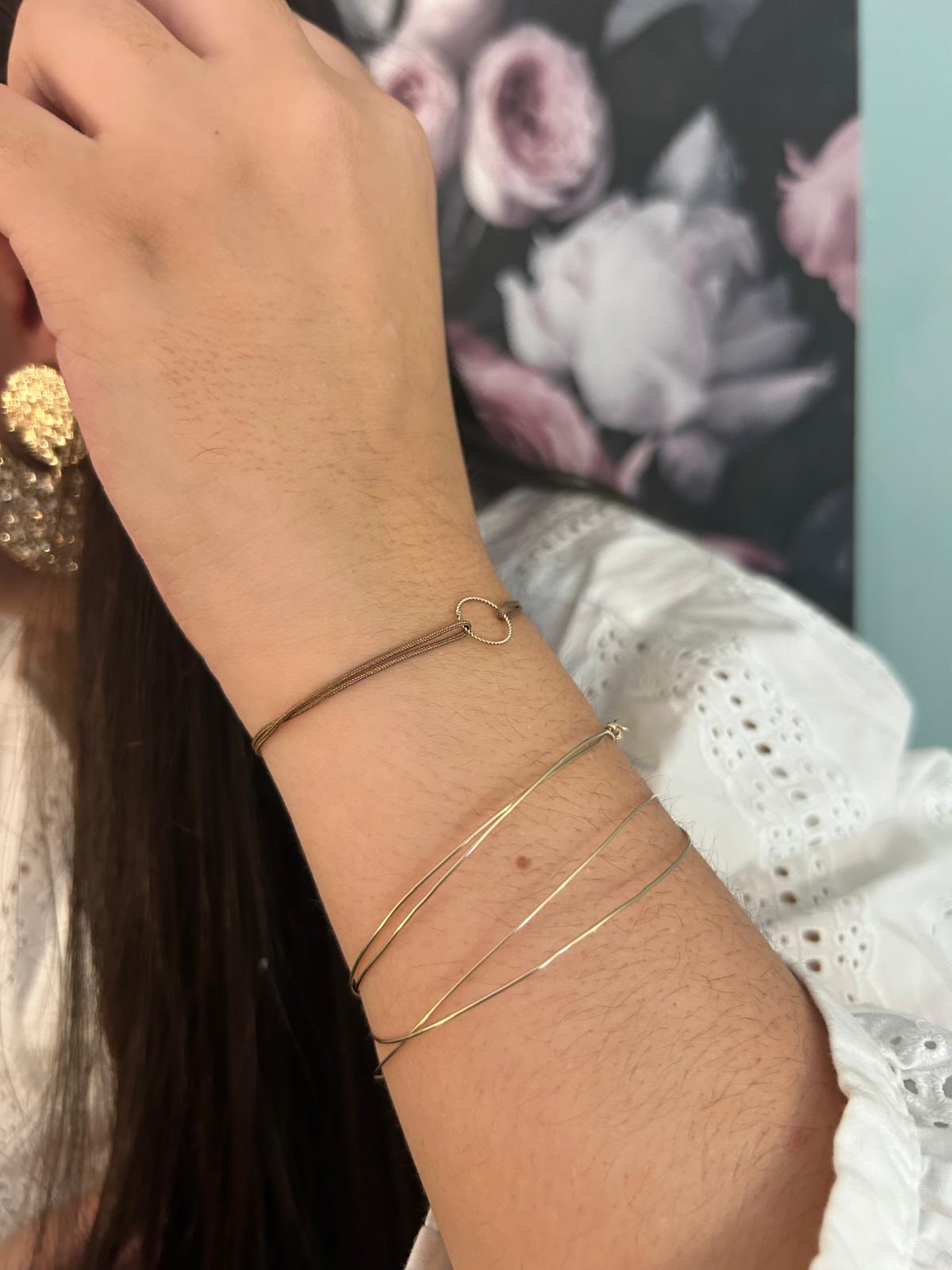 Partagez un moment de complicité avec ce bracelet. Une version adorable et délicate de notre modèle classique. Conçu pour les petites fashionistas, ce bracelet arbore un petit cercle en plaqué or, finement évidé, monté sur un cordon léger. Il permet aux mamans et aux filles de porter le même style, tout en ayant une version adaptée aux poignets plus fins. Célébrez votre lien unique avec ce bijou, idéal pour afficher votre complicité !