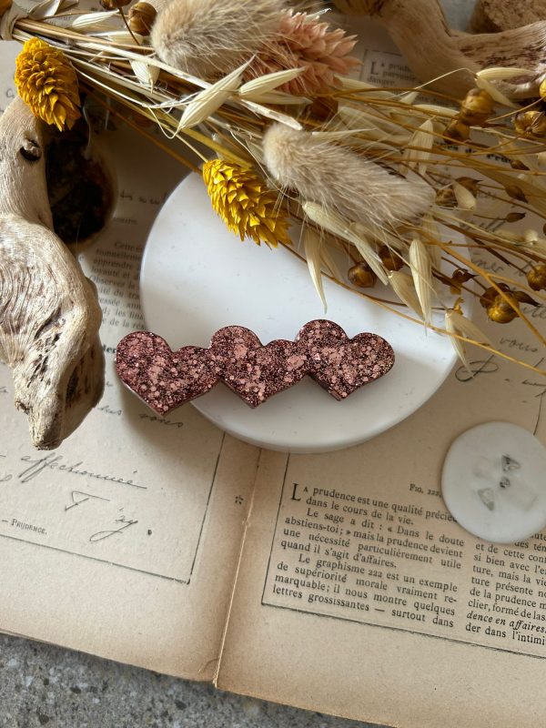 En forme de cœur et fabriquée en résine époxy, cette barrette est un véritable bijou.